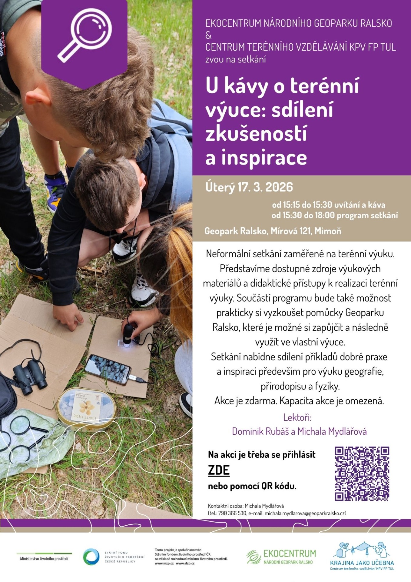 Neformální setkání zaměřené na terénní výuku pro studenty učitelství, pedagogy a další vzdělavatele.
